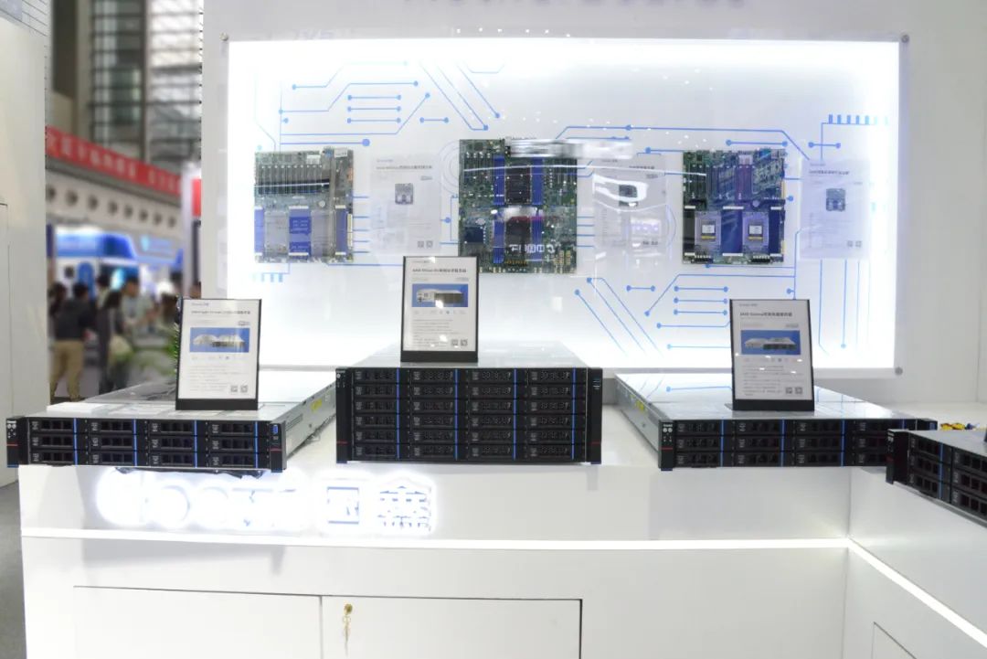 此次展会,Gooxi还展示了系列通用计算产品,以强大的计算性能和丰富的扩展能力为特点的,持续为政府、教育、金融、制造等行业客户赋能提供丰富算力支持。有率先搭载第五代英特尔®至强®可扩展处理器的Gooxi Eagle Stream双路高端服务器;搭载了AMD第四代EPYC™处理器的Gooxi AMD Genoa 双路高端服务器;以及龙芯双路标准服务器、海光3号双路高端服务器等国产系列服务器。